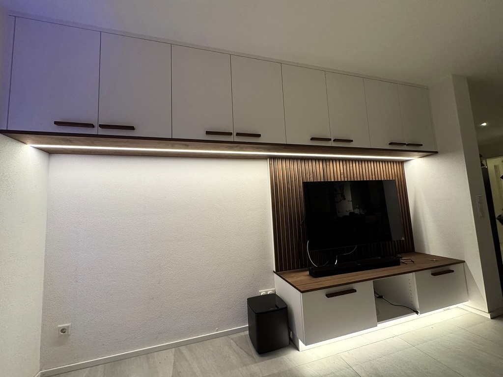 das TV-Möbel, das Ihren Fernseher mit einer individuellen TV-Wand erst richtig zur Geltung bringt, selbstverständlich sämtliche Kabel verdeckt und das zudem mit einer angenehmen Beleuchtung punktet